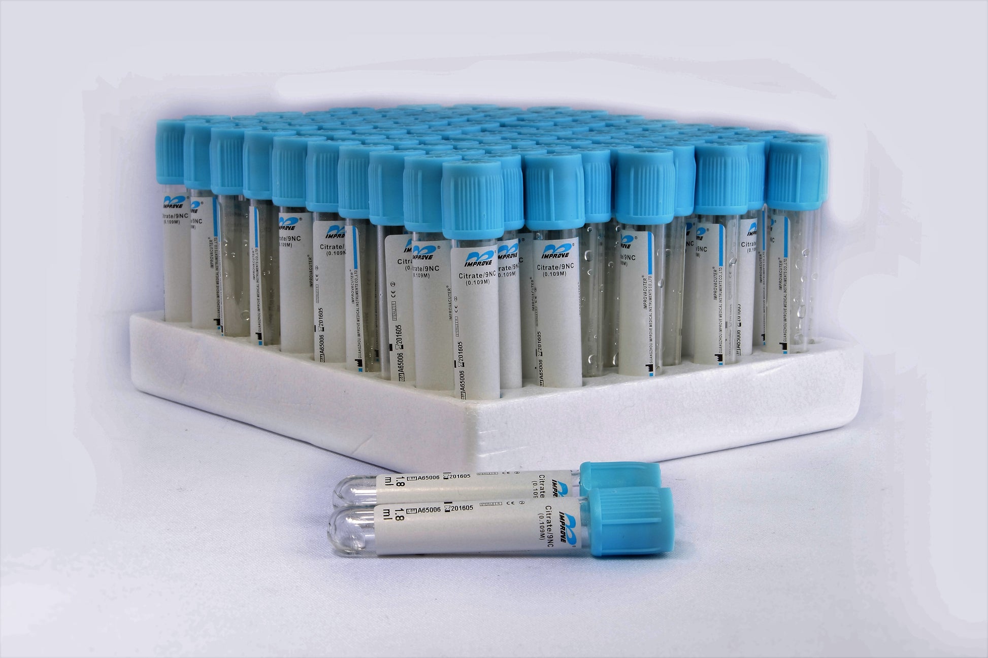 Citrate Tube (9NC 0.109M)/(9NC 0.129M) is mainly used for coagulation test. Citrate concentrations of either 0.109 mol/l (3.2 %) or 0.129 mol/l (3.8 %) are available. The choice of the concentration depends upon the policies of the laboratories. It can provide buffered system and ultrahigh surface energy surface of blood specimen and avoid the activation of blood platelet. It can provide an excellent condition for the test of PT and APTT values.
